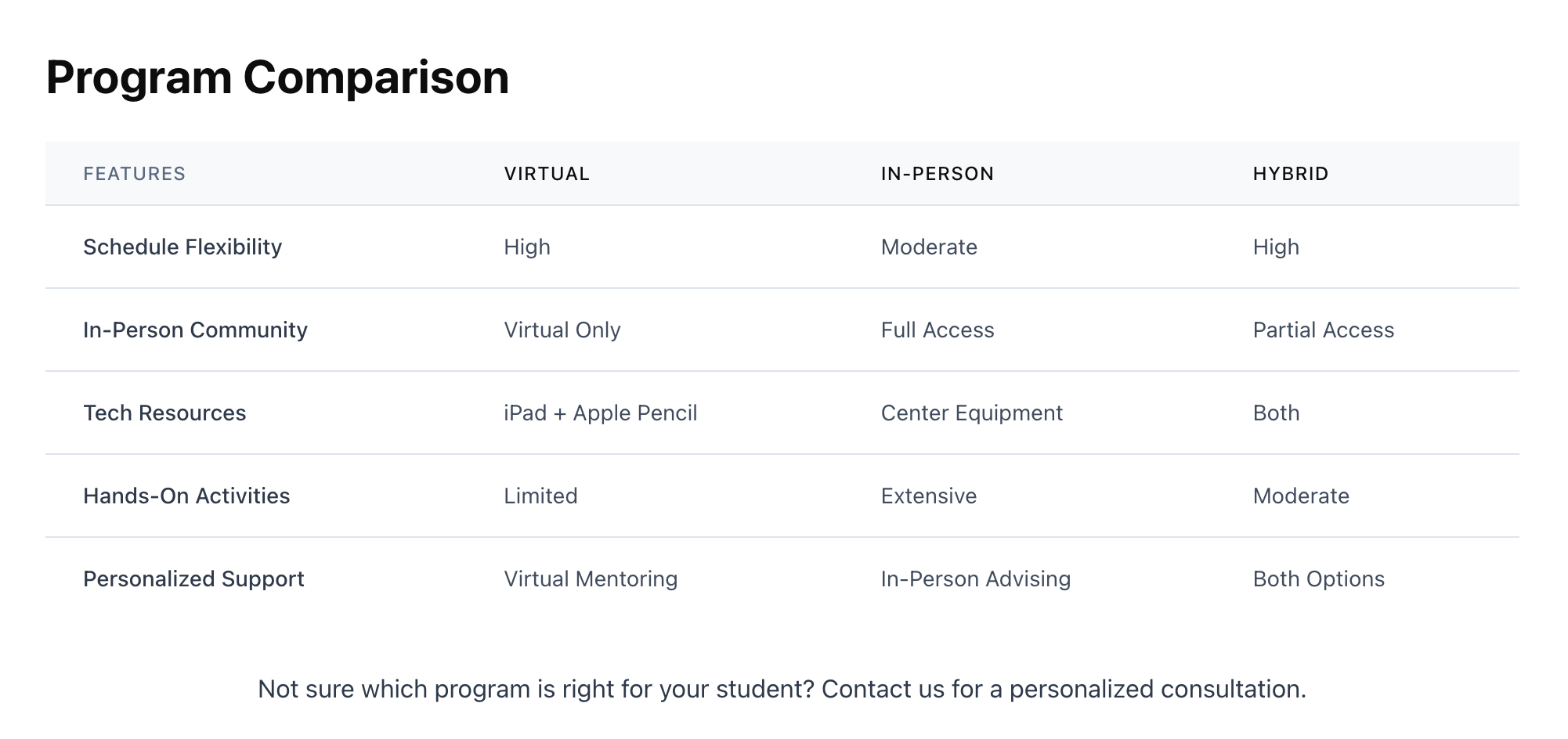 .A structured weekly schedule at our physical center with hands-on learning experiences.